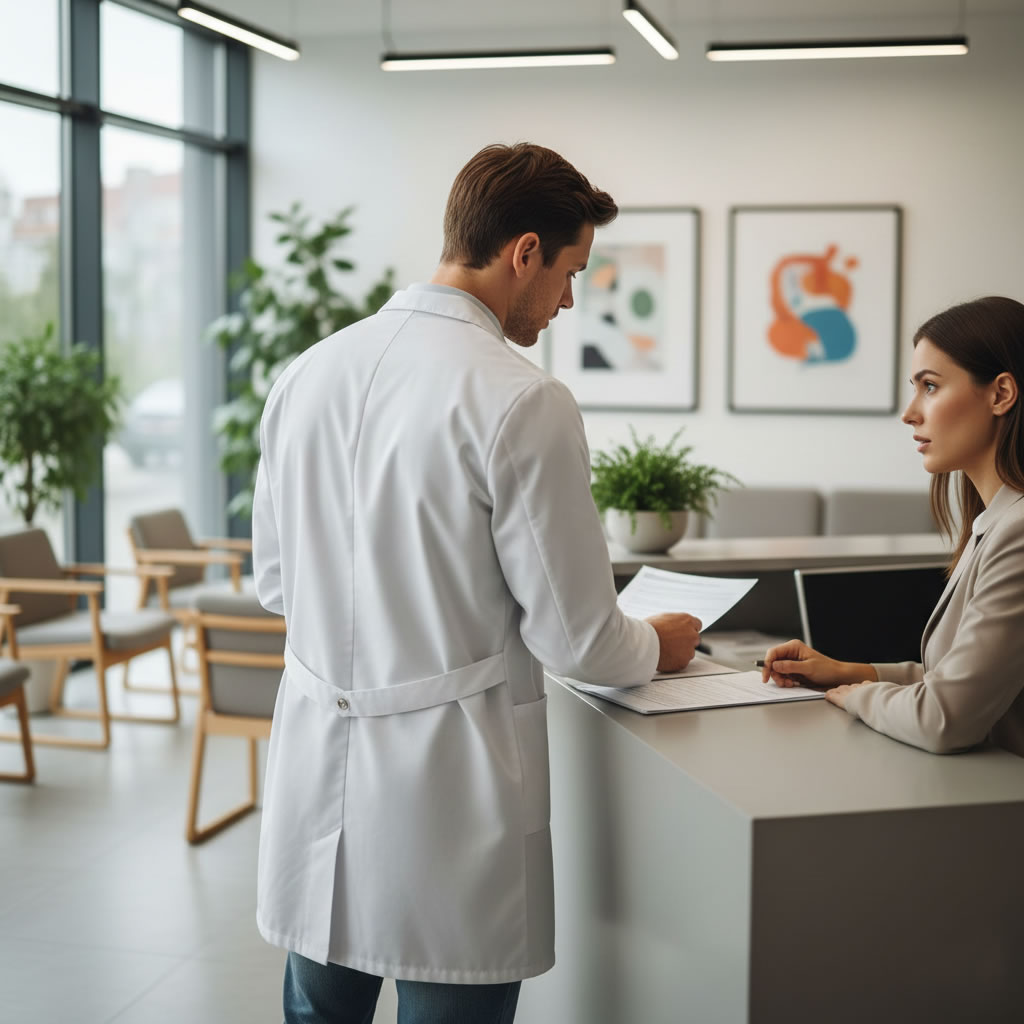 - Check-in an der Anmeldung: bitte Versichertenkarte bereithalten.
