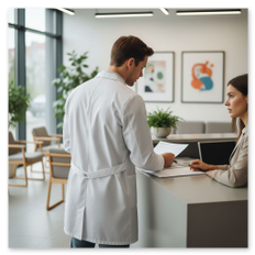 - Rezept/Überweisung und Terminvergabe am Empfang.